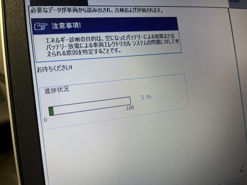 テストプロセスよりエネルギー診断から順番に行い、車両エレクトリカルシステムに対する原因箇所を点検してきます。