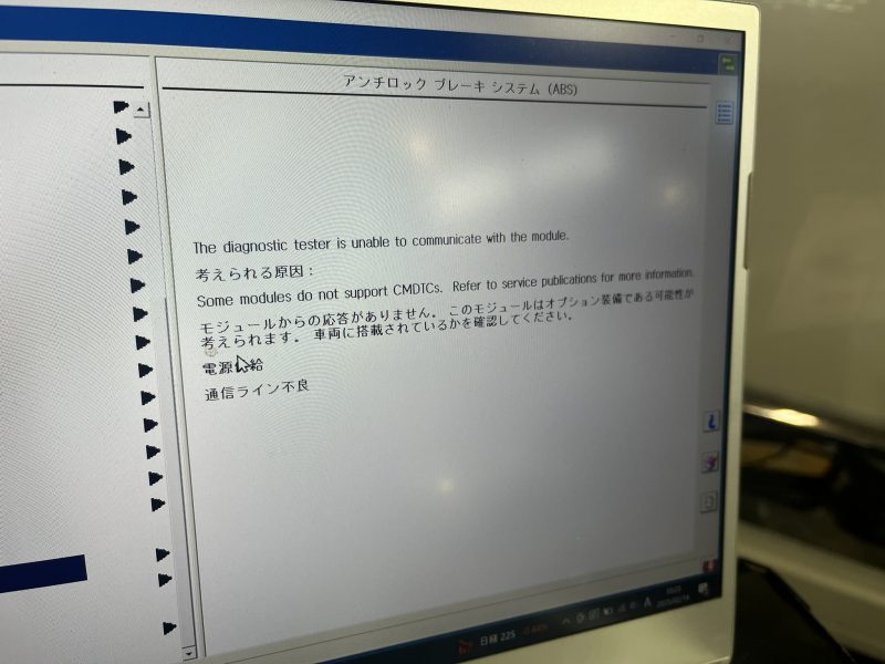 IDS診断機にてセルフテストを実行するも、ABSのモジュールが起動していなくテスターとコミュニケーションがとれない状態です