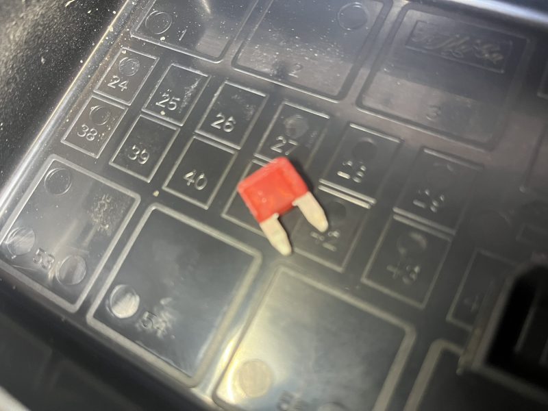 その為、新しいヒューズを装着してテスターでの診断結果では無事正常起動、ロードテスト等繰り返してもヒューズが断線することも無く、先の警告ランプ点灯も解決…と思いきや、冷間時にエンジンを始動すると同ヒューズがまた断線してしまう状態です。