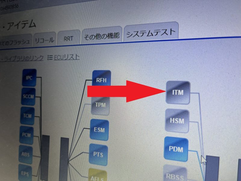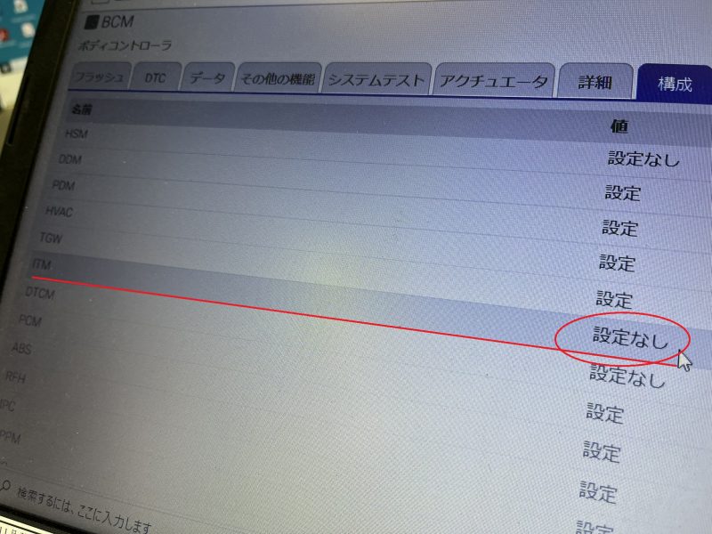 US本国仕様と同様に現車のBCM車両構成を、「ITMが存在しないネットワーク」構成へとプログラム変更処置。