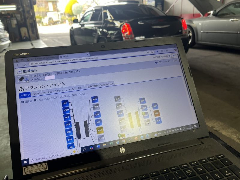 クライスラー/ダッジ系だけでも年間400件以上の各種メンテナンスご入庫を頂いているUGでは、連日オンラインによる診断/プログラム作業を行っています。(2024y度 年間クライスラー&ダッジ修理入庫実績425台)