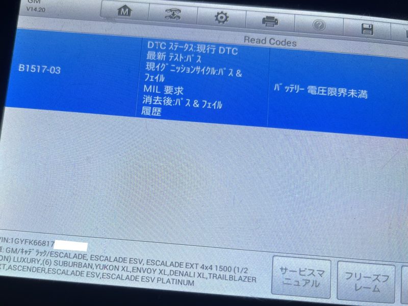 時折、チャージランプ警告灯が点灯状態に陥る、2007yキャデラックエスカレードの診断です。