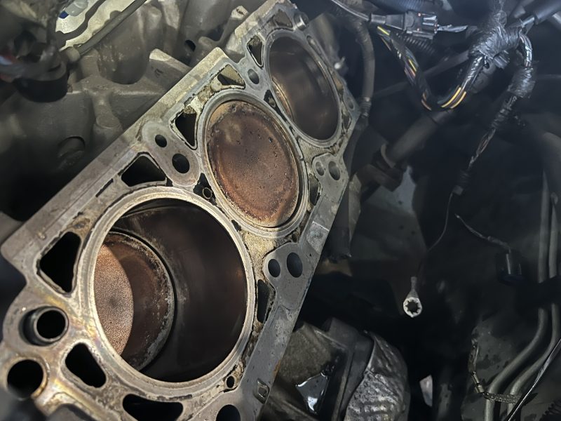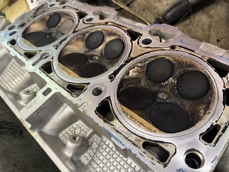 その為、左バンク側のシリンダーヘッドを取り外し、念のためバルブ廻りやシリンダーの状態をチェックしていきます。