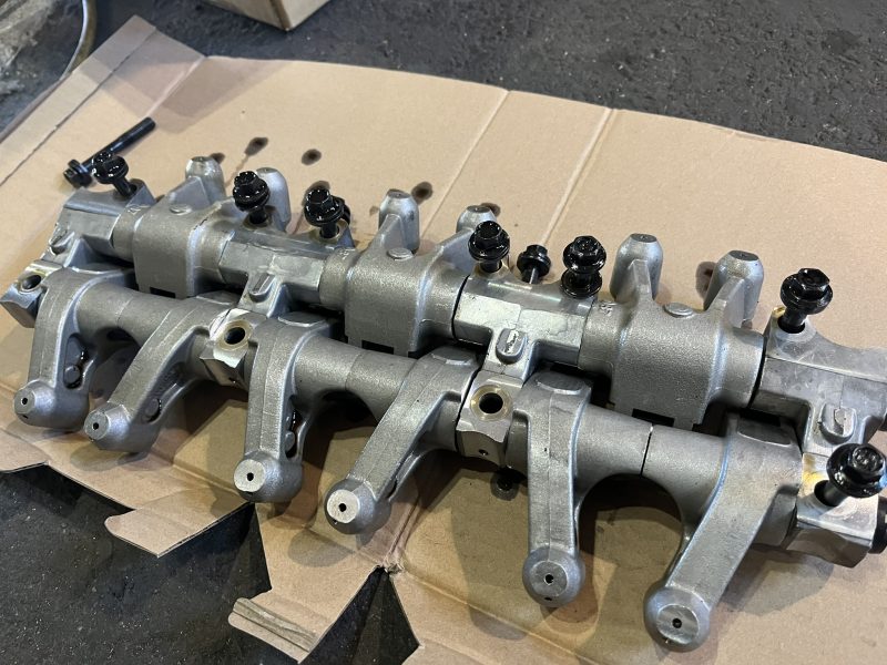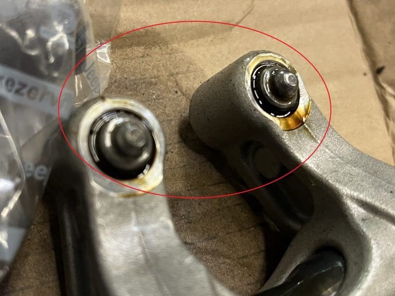 ロッカーアームの先端にある油圧リフター部が、左バンク側の数か所で脱落してしまっており、それに伴ってバルブリフトが正常に機能しない状態です。