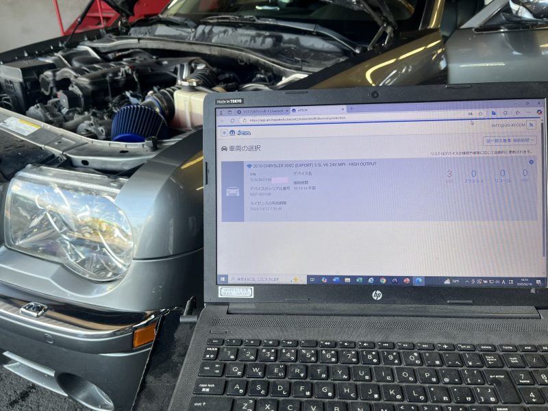クライスラー/ダッジ系だけでも年間400件以上の各種メンテナンスご入庫を頂いているUGでは、連日オンラインによる診断/プログラム作業を行っています。(2024y度 年間クライスラー&ダッジ修理入庫実績425台)