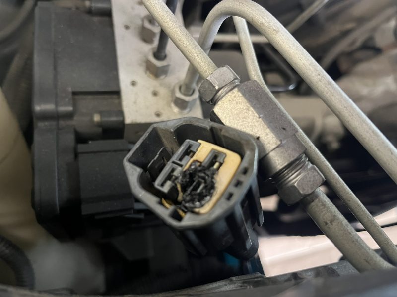 交換するラジエターが届いたので作業する為にエンジンファンを取り外すと、ファンモーターのハーネス端子が焼損してしまっているのが発覚。