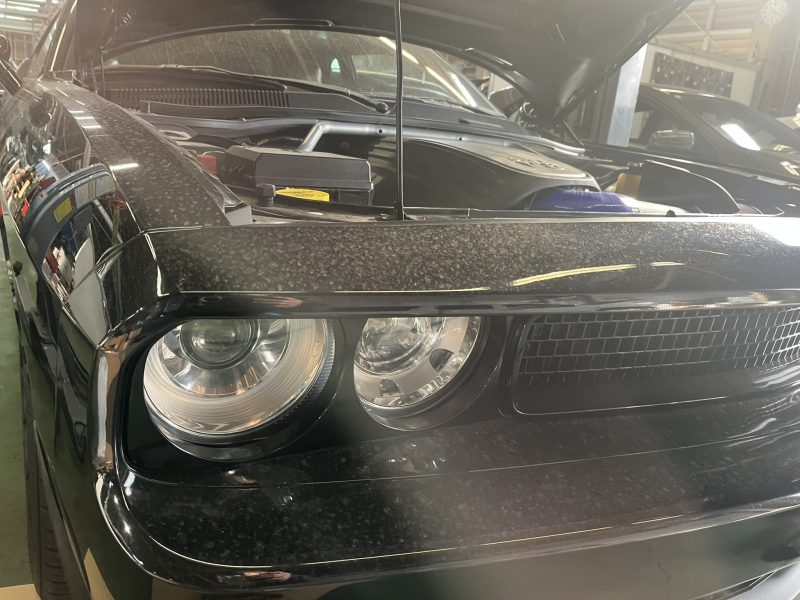 ラジエターから冷却水漏れが発生したのでレッカーご入庫頂いた、LCモデル/ダッジチャレンジャーの修理です。