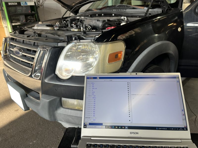 業者様よりお問い合わせを頂き、かなりのご遠方にもかかわらずUGへ修理ご入庫頂いた、2010yフォードエクスプローラーの作業です。