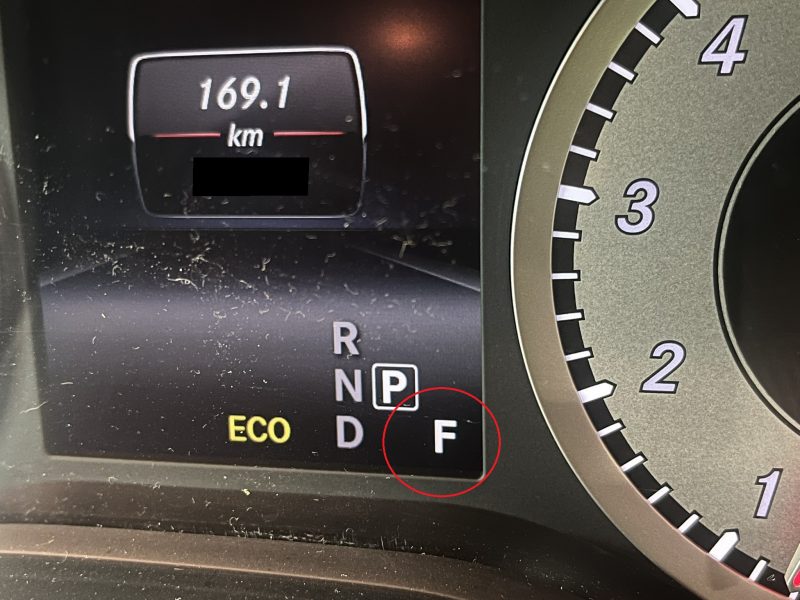 このフルードレベル測定モード中は、メーター上の走行プログラム表示がFマークに切り替わり点滅します。