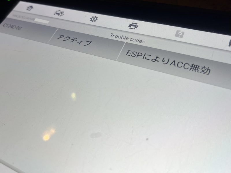 結論から言えば今回取り付けられているABS/ESPユニットのハードウェアの問題で、選択された中古ユニットがACC機能が装備されていない車両用の品番であることが判明。