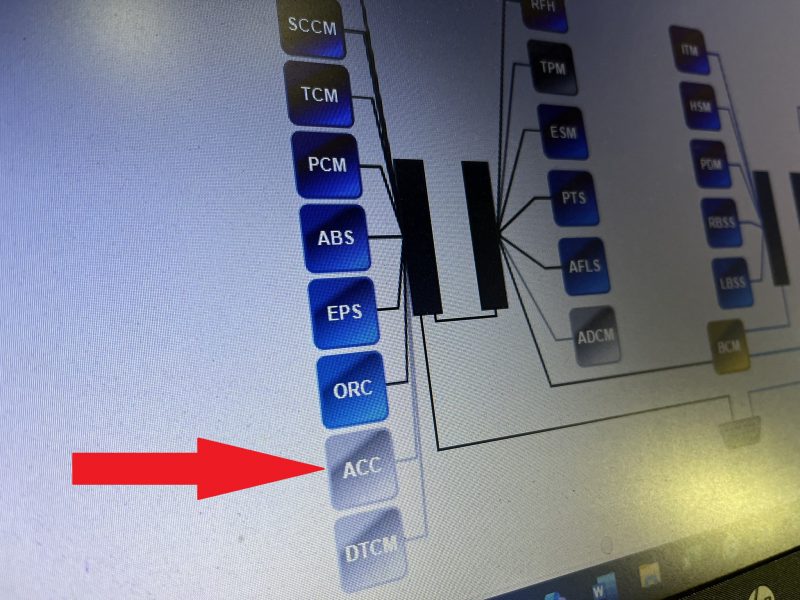 コーディングによる車両構成変更により、ACC(アダプティブクルーズコントロール)機能を設定無しにプログラムすることで、ネットワーク上よりACC機能を削除します(トポロジーモニター上もグレーアウト状態に変更)。