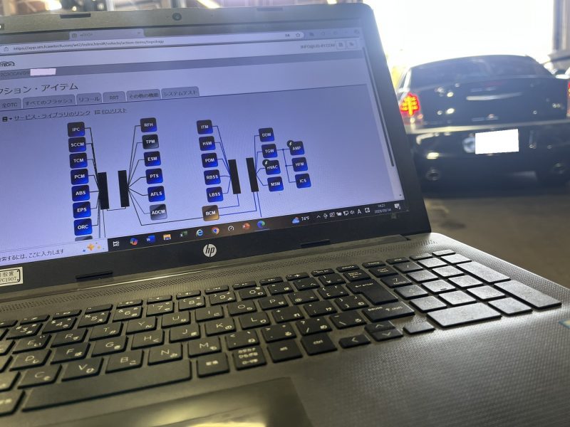 クライスラー/ダッジ系だけでも年間400件以上の各種メンテナンスご入庫を頂いているUGでは、連日オンラインによる診断/プログラム作業を行っています。(2024y度 年間クライスラー&ダッジ修理入庫実績425台)
