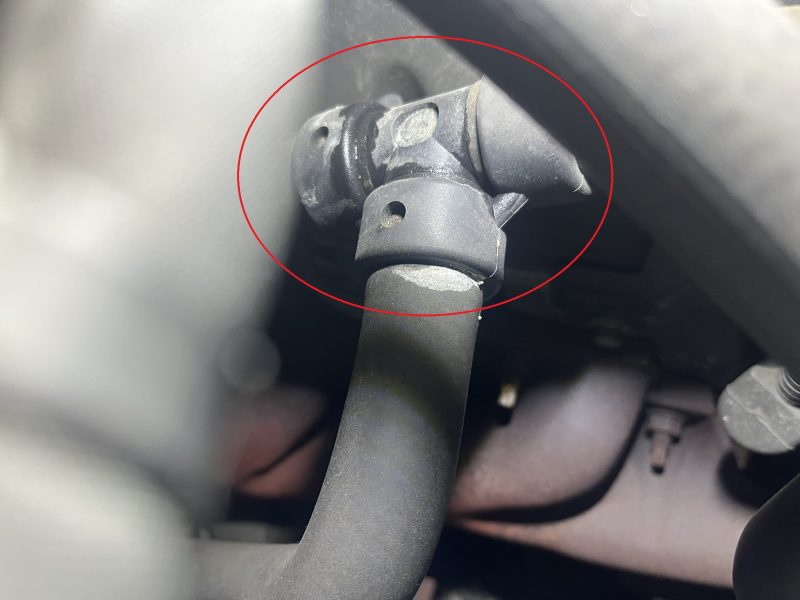 このV6/4リッターの2Vエンジンではヒーターライン周りからの冷却水漏れトラブルの事例が多く、今回の車両も同様の部位からリークが発生しているのが確認出来ました。