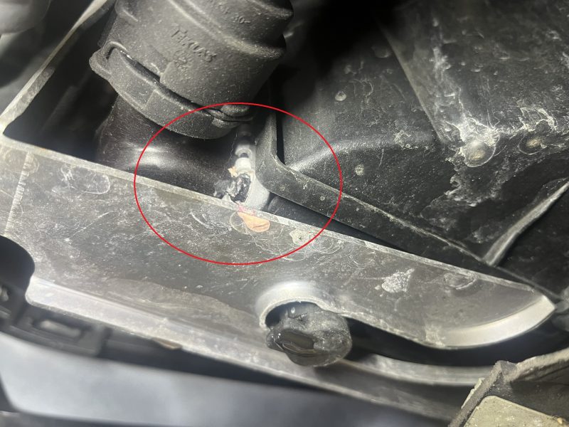 メインラジエター同様にアルミコアの樹脂製タンク構造により、経年劣化に伴って樹脂製タンクへのカシメ部よりリークが発生。