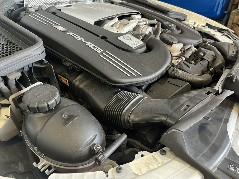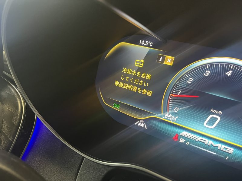 冷却水の点検警告が表示されてしまっている、W205モデル/ベンツC63の修理作業です。