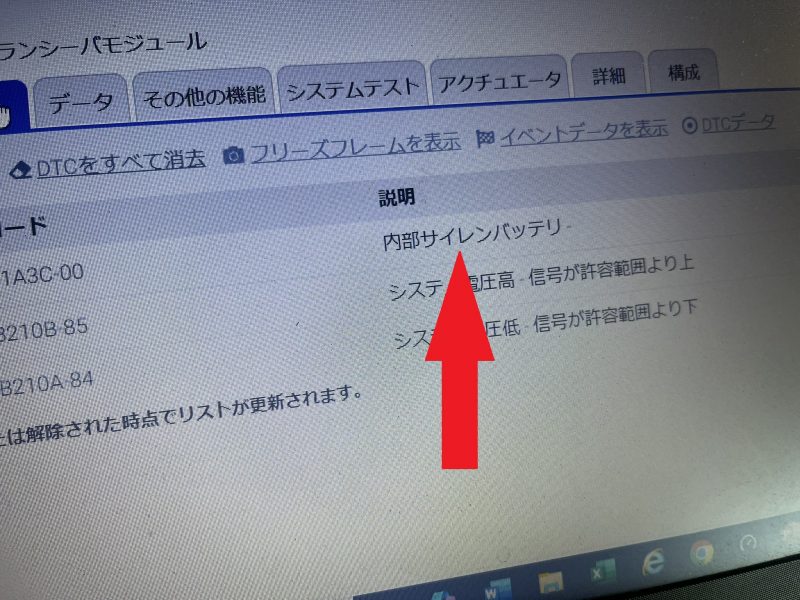 今回のキャリバーも「内部サイレンバッテリー」のエラーを検知しており、サイレンバッテリの寿命によりセキュリティサイレンが誤作動してしまう状態です。