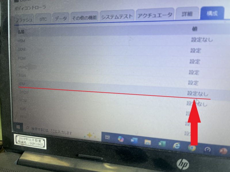 US本国仕様と同様に現車のBCM車両構成を、「ITMが存在しないネットワーク」構成へとプログラム変更処置。