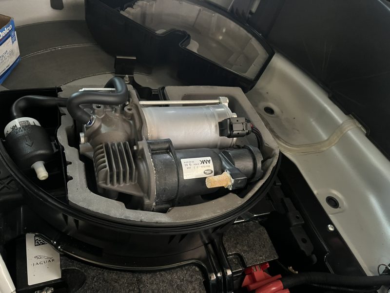 レンジローバーヴォーグのエアサスペンションコンプレッサーは、リアラゲッジルーム内に設置されています。
