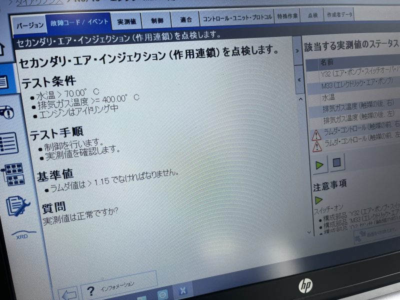 エアポンプの交換作業後の再点検では、セカンダリエアシステム制御も正常に復帰し、無事納車も完了です。