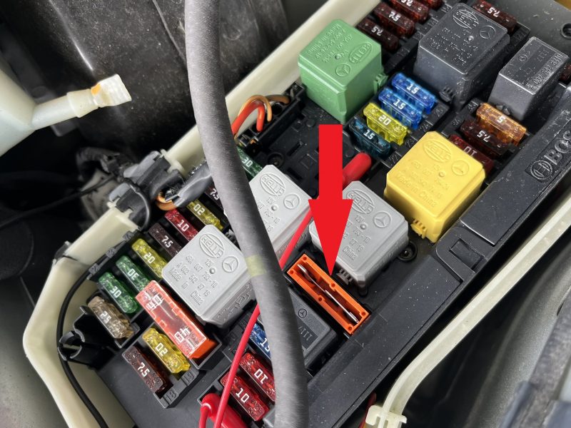 結果、今回のX204では、エアポンプの電源ヒューズである、ビックブレードタイプ/40Aのヒューズが断線していた為、エアポンプが作動せず=先のエラーを検知している状態。
