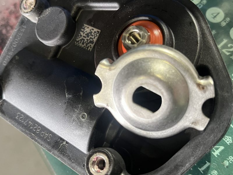 問題のエキゾーストフロー制御バルブのアクチュエーターを取り外して確認すると、モーター軸部に取り付けられているディスクの固定ボルトが緩んでいる状態でした。