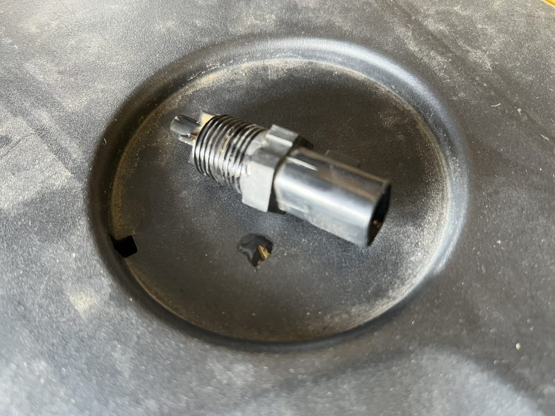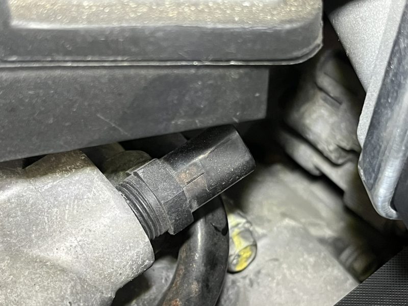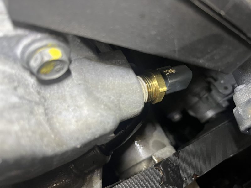 ウォーターポンプに装着されている水温センサー、今回腐食しているPCM端子が、ちょうどこの水温センサーの回路となります。