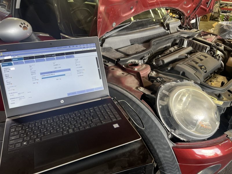 エンジン始動直後に調子が悪く、チェックエンジン警告インジケーターも点灯してしまっている、R55モデル/BMWミニクーパーの診断です。