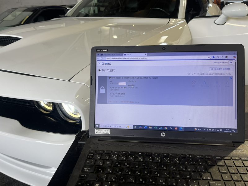 クライスラー/ダッジ系だけでも年間400件以上の各種メンテナンスご入庫を頂いているUGでは、連日オンラインによる診断/プログラム作業を行っています。(2024y度 年間クライスラー&ダッジ修理入庫実績425台)