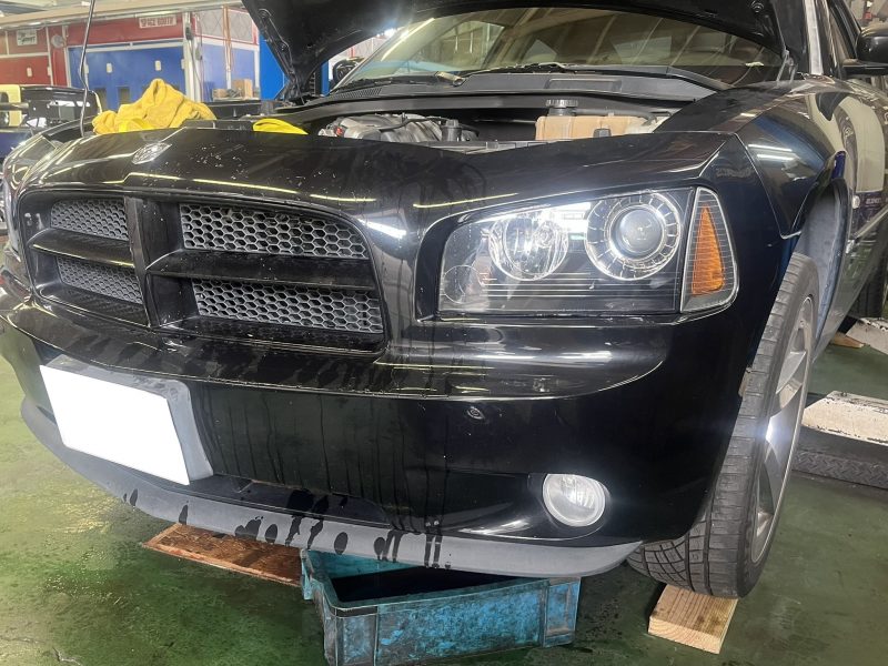 過大な冷却水漏れにて急遽レッカーご入庫頂いた、2008yダッジチャージャーの修理作業です。