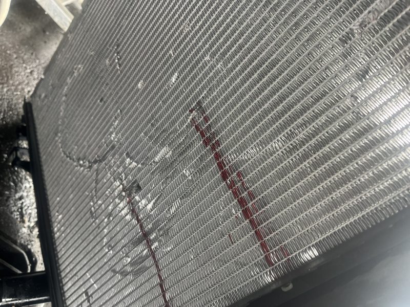 その激しく冷却水が漏れてしまっている箇所は、ラジエターのコア破損によるもの。