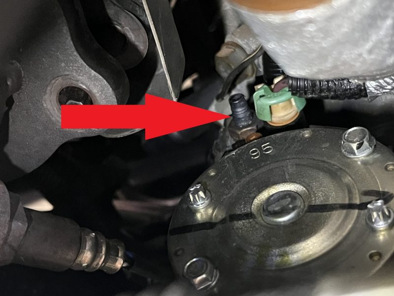 バッテリーのプラスハーネスはスターターモーターのB端子へと接続され、そのB端子にてオルタネーター側のB端子と共締めされています。
