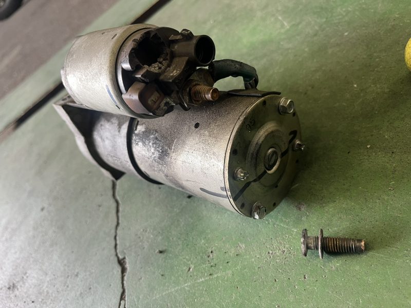 少し見難いですが、スターターモーターのB端子が黒く焼けてしまっているのが確認出来ます。