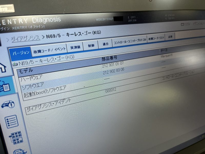 XENTRYテスターにてショートテストを行うと、特に該当するようなDTC(故障コード)は検知されていません。