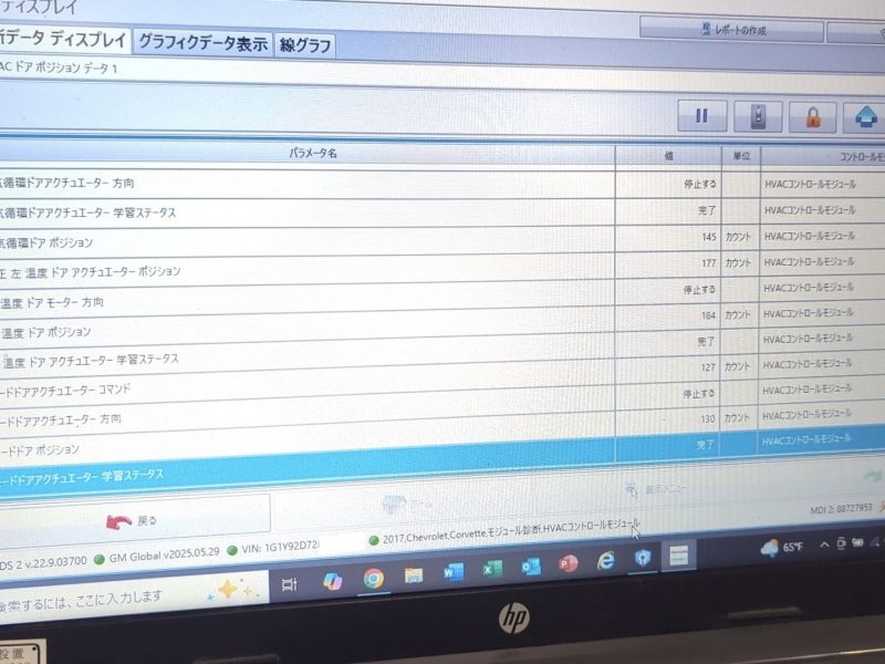 無事アクチュエーター交換&学習プロセス後は、モードドアアクチュエーターステータスも学習完了値に復帰し、エアコンモード切替も正常復帰となりました。