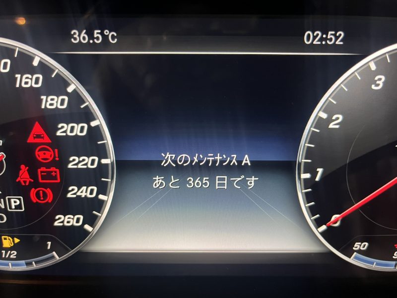 ベンツにはASSYST(アクティブサービスシステム)機能が存在し、点検やオイル交換時期が近づくとメンテナンスの時期及び距離をアナウンスする機能が備わっています。