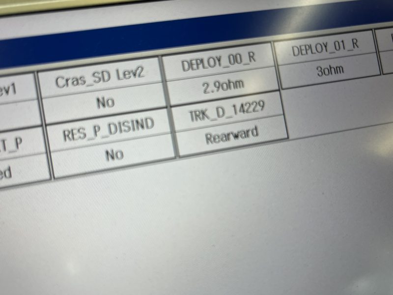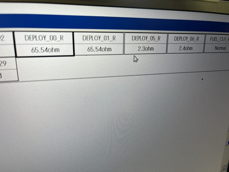 新しい部品へと組み換え後は、ステージ1/2共に正常な抵抗値を示し=エアバッグ警告のランプも消去可能となりました。
