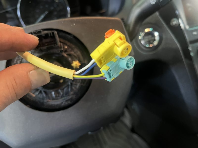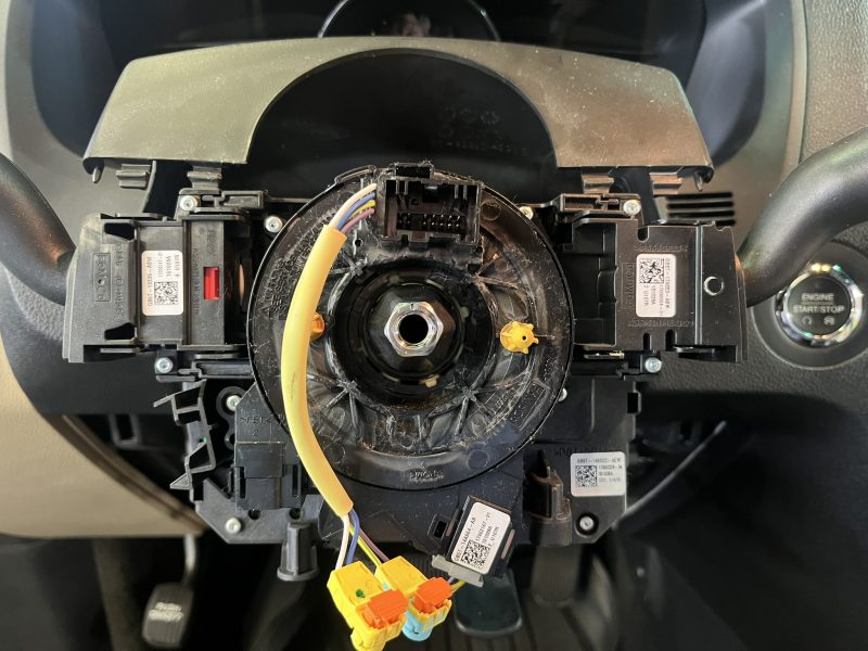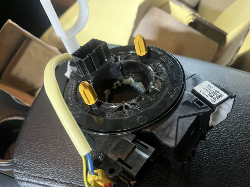 回転動作するステアリングへの回路配線の為、リール上のコンタクトスプリングを介して結線されていますが、その繰り返し行われた回転動作によって断線トラブルが発生しやすい部位となります。