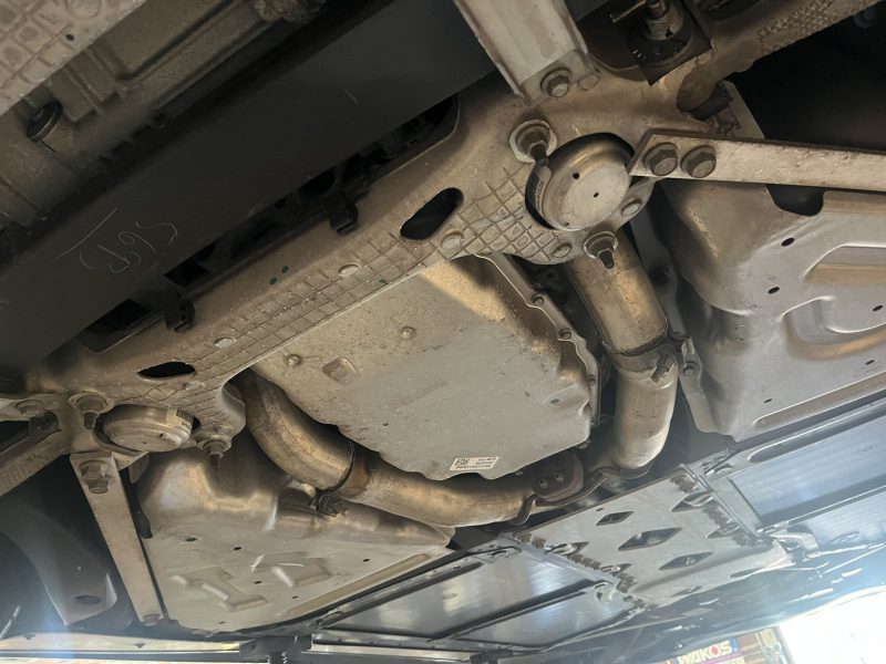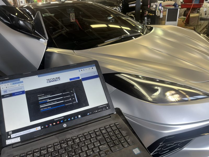 エンジン始動状態からキーOFFにした直後、フロア下あたりより「ガラン…」と異音が発生する、C7モデル/シボレーコルベットの修理作業です。