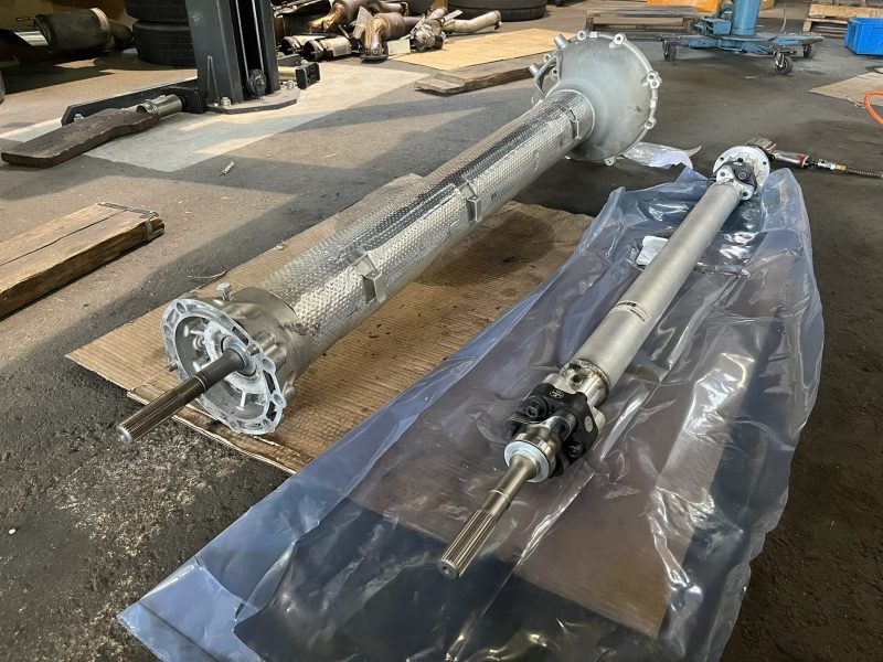 車両より取り外したトルクチューブを更に分解し、内部に挿入されているプロペラシャフトを新品部品へと組み替える作業となります。