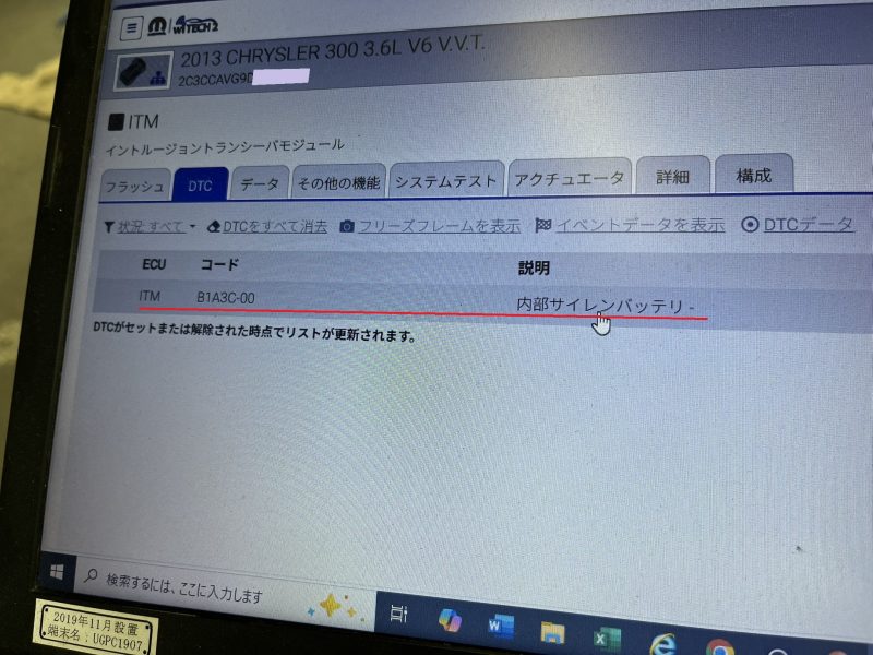 リモコンキーにてドアロックした数秒後にセキュリティサイレンが誤作動する…急遽ユーザー様よりお問い合わせを頂き、ITM無効化コーディング対処を行った、2013yクライスラー300のクイック作業です。