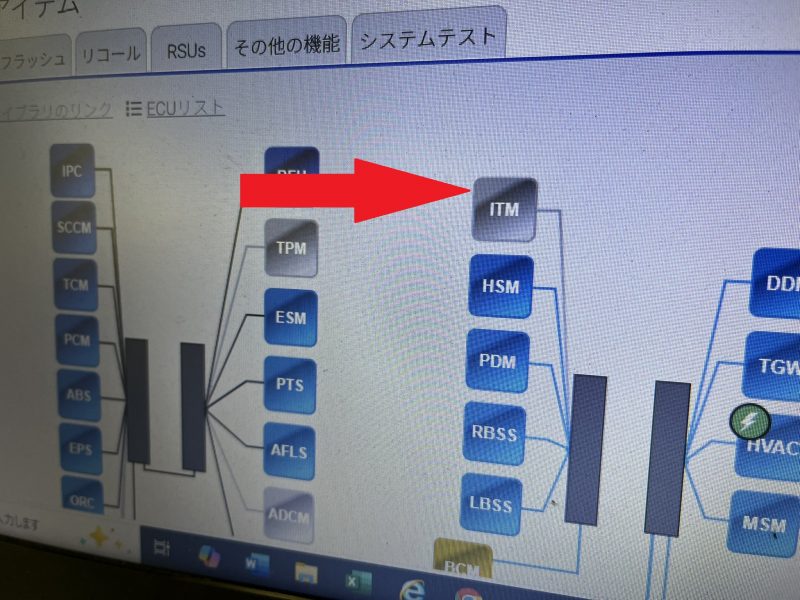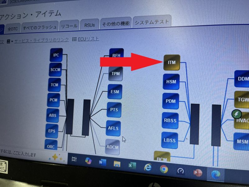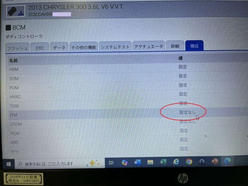 US本国仕様と同様に現車のBCM車両構成を、「ITMが存在しないネットワーク」構成へとプログラム変更処置。
