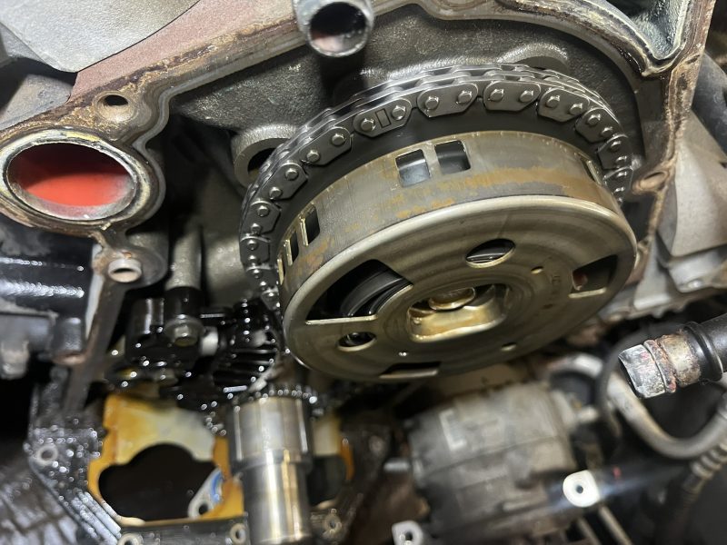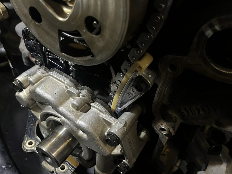 先の症状で考えられる要因としては、タイミングチェーンガイドの破損トラブルによるものなどが挙げられます。