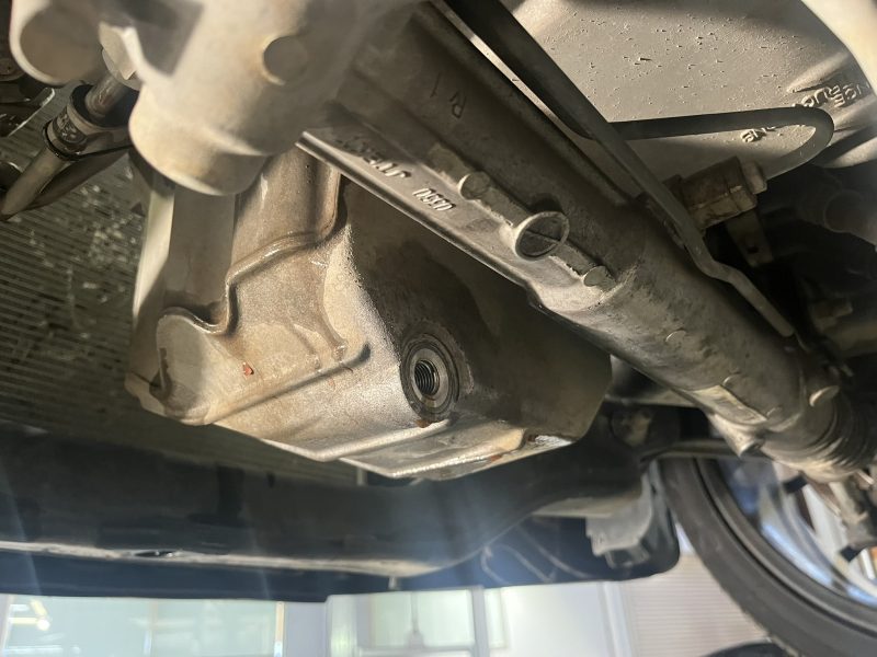 エンジンオイル交換作業をしていてドレンボルトからオイルを排出すると、樹脂片のような残骸が一緒に出てきた…という案件にて修理お預かりした、LCモデル/ダッジチャレンジャーの作業です。