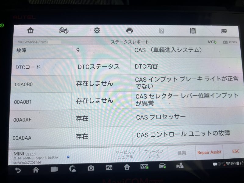 しかし車両へのアクセスアプローチが異なるAUTEL診断機を接続すると、CAS(カーアクセスシステム)コントロールユニットのハードウェア不良が検知されてしまっているのが判明。