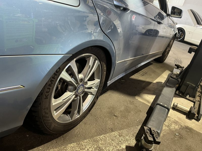 リアサスペンションのエアマチックスプリング(ベローズ)交換にて作業を行った、W212モデル/ベンツE300です。