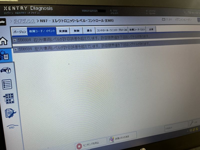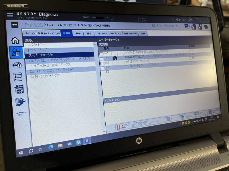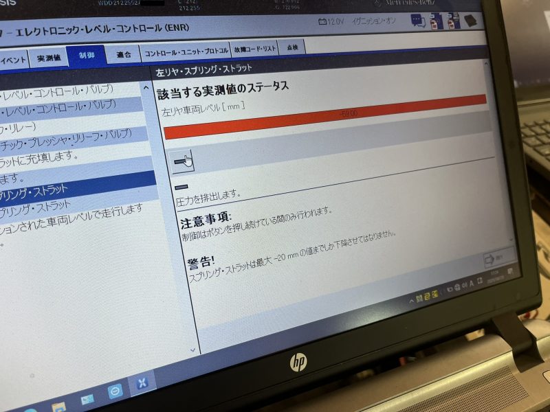 部品交換後はエアマチック制御の点検はもちろん、時間経過に対する車高保持も確認し作業完了です。