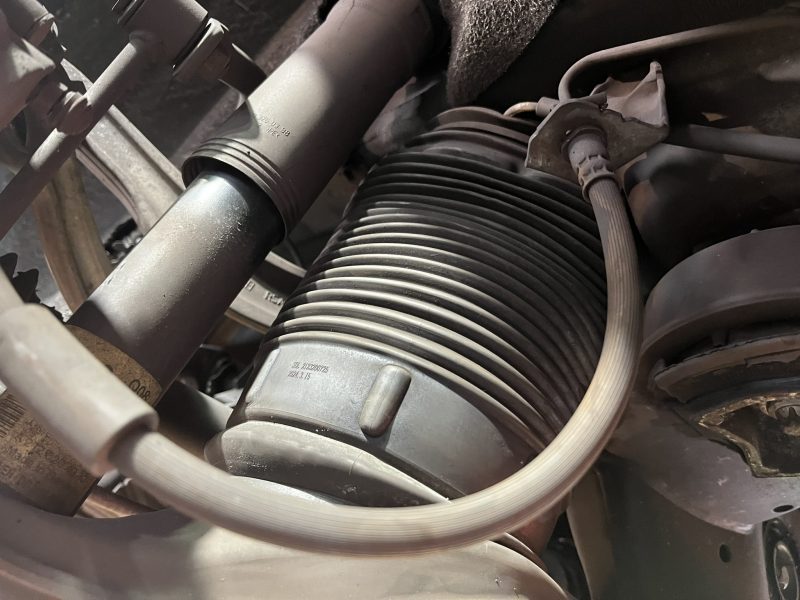 今回のW212では案の定、リア左右のベローズから劣化によりエアリークが発生しているのが判明。