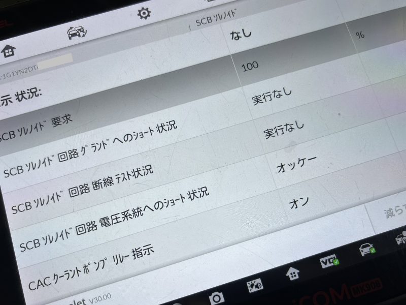 新品のSCBソレノイドへと組み換え後は、アクティブテストでの動作チェックも問題なく正常に作動し、ロードテストによる正常制御を確認して納車完了です。
