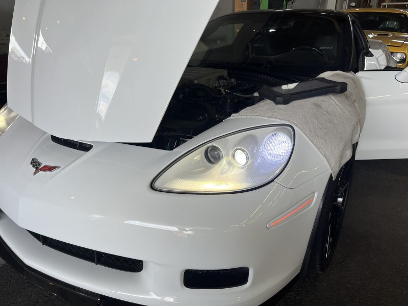 高負荷でのドライビング時にノッキングのような症状が発生してエンジンが吹けなくなる等の不具合に陥る、C6モデル/シボレーコルベットZR1の点検/修理作業です。