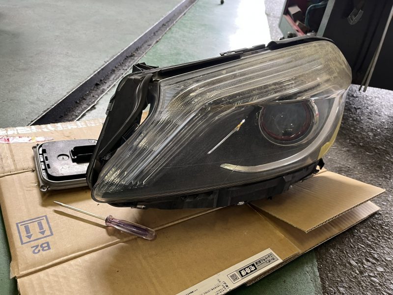 左側のフロントウインカー及びデイライトが全く点滅/点灯制御しなくなった、W176モデル/ベンツA180の作業です。